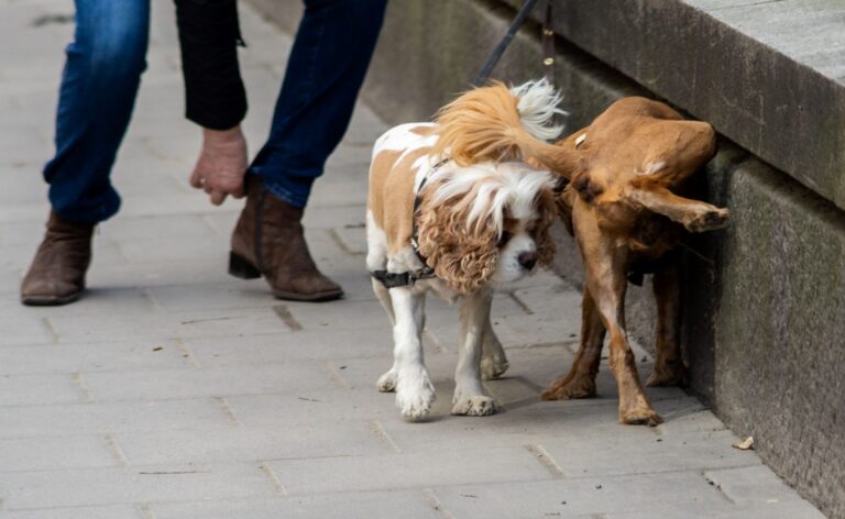 La pipì del cane sul muro del palazzo